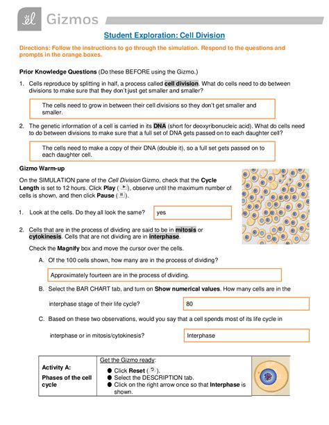 Read Student Exploration Cell Division Answer Key Kindle Editon